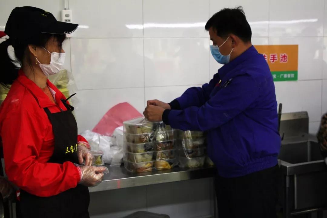 每天早上七點,他就來到公司,巡查食堂、后廚衛(wèi)生情況,檢查菜品進貨渠道、菜品新鮮程度。每天用餐時間點,他都站在現(xiàn)場維持盒飯領取秩序,出現(xiàn)多部門同時來取盒飯時,他積極協(xié)調(diào)好排隊間隙,避免出現(xiàn)人群過于密集。很多時候他一站就是一整天,吃飯都是端著個碗在角落里扒拉兩口。大家問他這樣能吃的飽嗎。他總是滿臉堆笑,含糊地說:“沒事沒事,我吃這些就足夠了,你們吃的飽、吃的開心我就滿足了。”