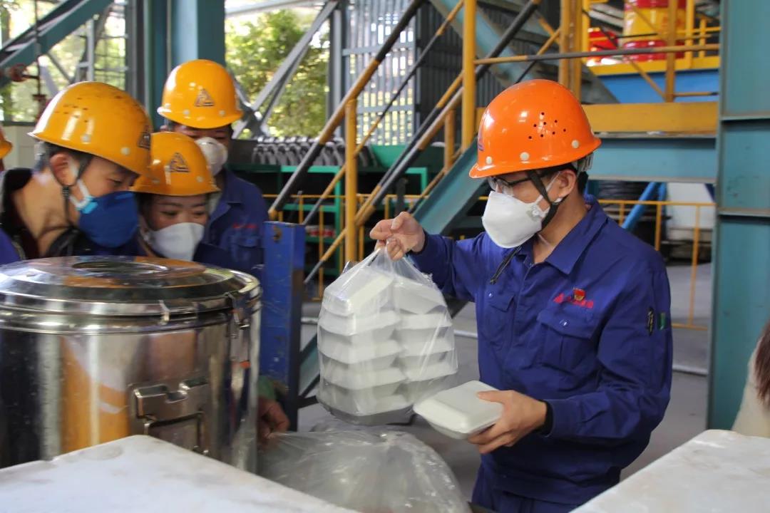 疫情防控時期,全廠的職工的用餐都是由食堂供應的,怎么樣才能搭配出健康、安全、營養(yǎng)均衡的盒飯成了他每天要考慮的問題。當五點半的晚餐供應完后,蘇斌輝又開始了新的忙碌。“我們?nèi)块T的員工要留下來匯總一下今天的用餐數(shù),看看和各部門昨天報上來的數(shù)據(jù)符不符合,然后要匯總第二天各部門的用餐數(shù),再根據(jù)今天的情況盡量多備一些,肯定不能讓大家餓肚子的。”蘇斌輝說道。條條道道的工作說起來很輕松,做起來卻要花費許多的時間和功夫。漆黑的夜晚,綜合管理部的燈火從來沒有早于十點關過。從24日開始,為在崗職工累計提供8197份午餐,4339份晚餐,為返廠隔離員工累計提供158份午餐和晚餐。“嚴守三寶凈土,我能做的只有這些,我一定會盡心盡力做好。大家吃的健康,吃的開心,我就很心滿意足了。”這是蘇斌輝的愿望,也是他作為黨員的初心和使命。