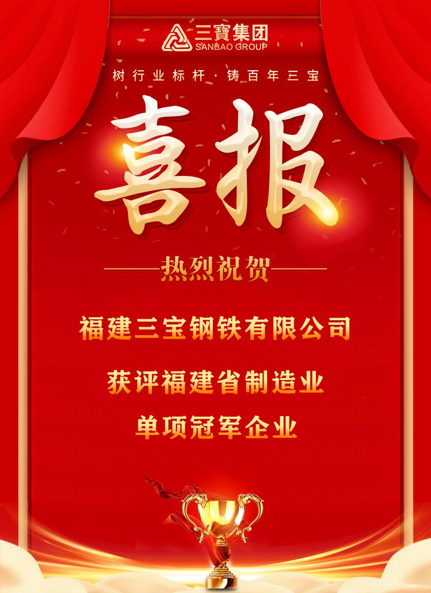 喜報(bào)!福建三寶鋼鐵有限公司獲評(píng)福建省制造業(yè)單項(xiàng)冠軍企業(yè)